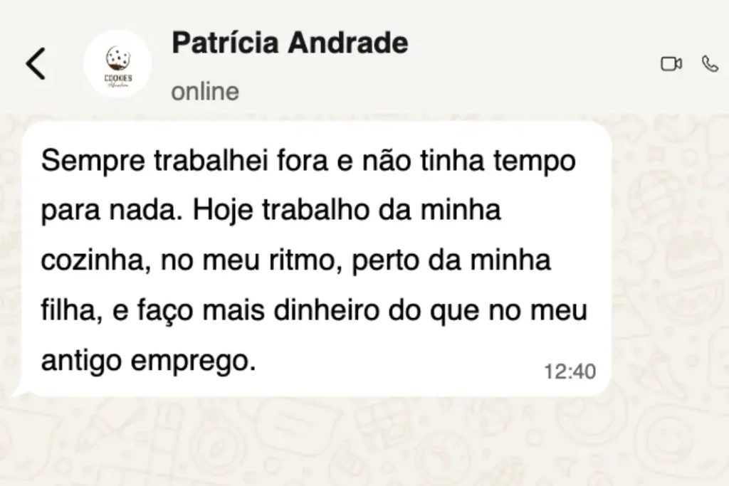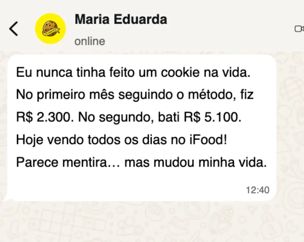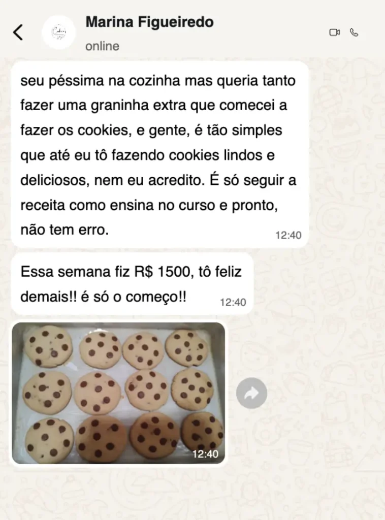 Trata-se de um método prático e validado por mulheres reais, que já faturam vendendo cookies caseiros — inclusive começando sem experiência e com pouco investimento.